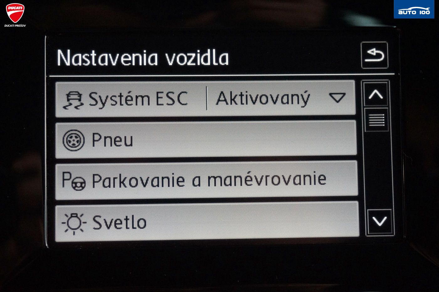 Dažďový senzor, ABS, Airbagy, ASR, Brzdový asistent, Centrálne zamykanie, ESP, Imobilizér, Isofix, Predný a zadný parkovací senzor, Vonkajší teplomer, Kontrola tlaku v pneumatikách, Senzor tlaku v pneumatikách