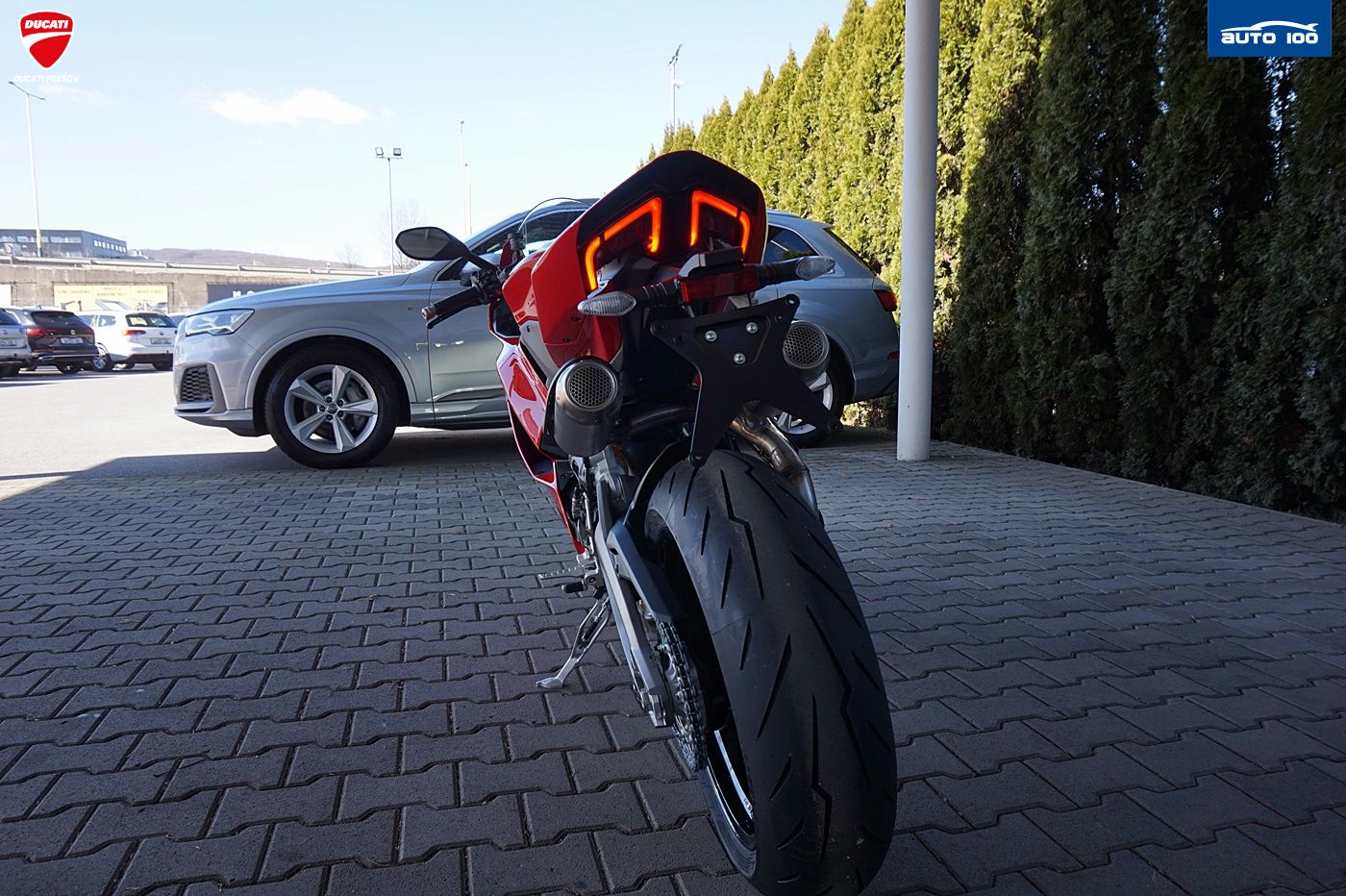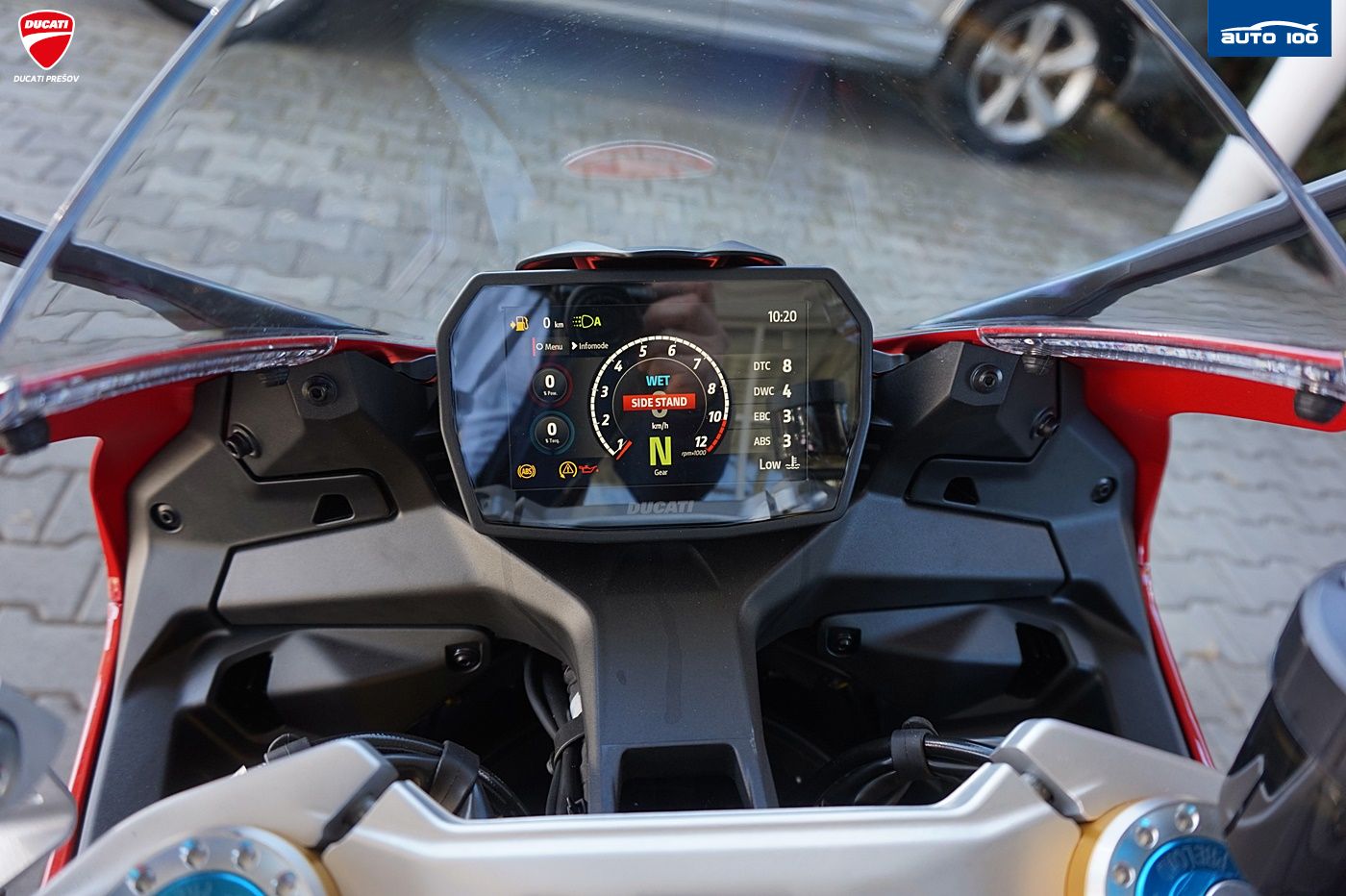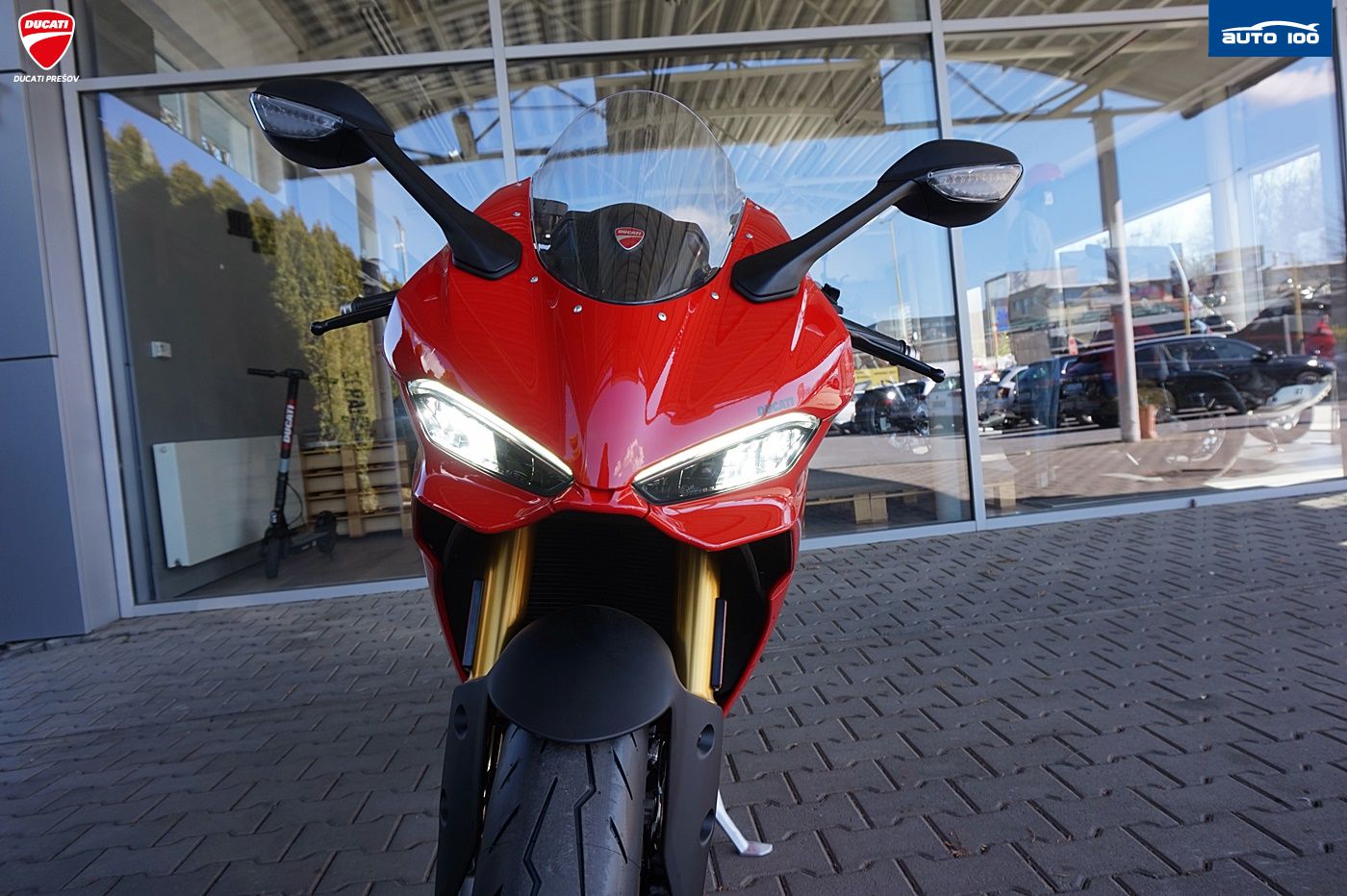 bezpečnostná výbava Jazdné režimy, Režimy výkonu, Bosch Cornering ABS, Ducati Trakčná Kontrola (DTC), Ducati Wheelie Control (DWC), Engine Brake Control (EBC), Automatická kalibrácia kolies, Ducati Brake Light (DBL) štandardná výbava Ducati Quick Shift (DQS) up/down 2.0, plné LED osvetlenie s automatickým denným svietením (DRL), automatické vypínanie smeroviek, Lithium-ion batéria, Ducati Power Launch (DPL), Pit Limiter, Coming Home,
