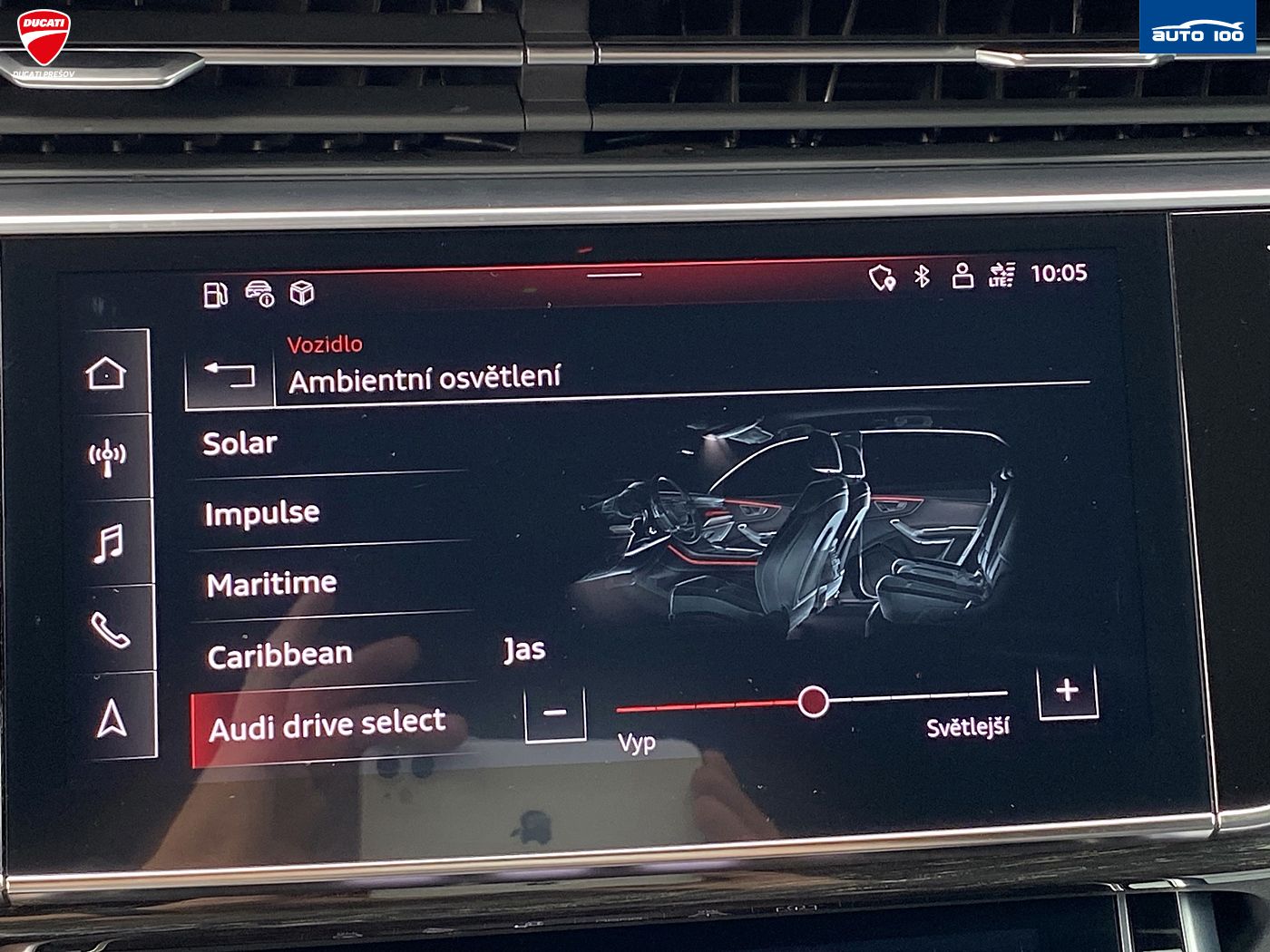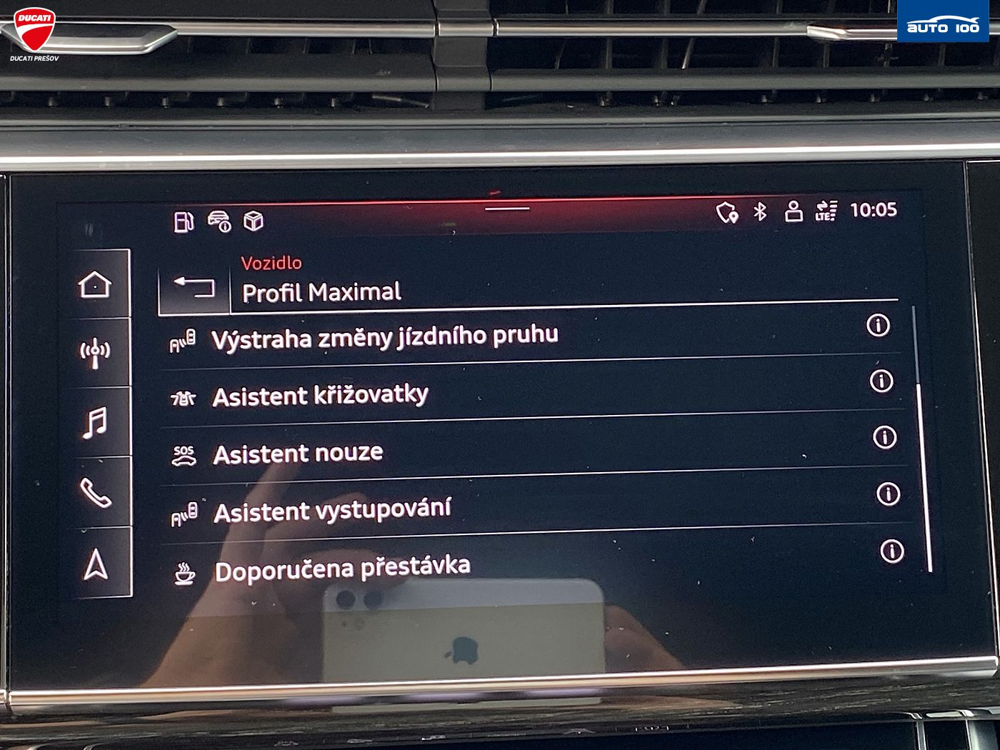 Hliníkové disky, Svetelný senzor, Stop&start systém, Elektricky sklápateľné vonkajšie spätné zrkadlá, Lakťová opierka vzadu, Nastavenie jazdných režimov, Elektrické otváranie a zatváranie kufra, Poťah sedadiel Alcantara/koža, LCD prístrojový panel, Ambientné osvetlenie interiéru, Audi Connect, Audi pre sense, Vyhrievané zadné sedadlá, LED svietenie, Deaktivácia airbagov, Systém kontroly tlaku v pneumatikách (TPMS), Natáčacie svetlomety, Vyhrievaný volant, Elektrické ovládanie kufra, Ostrekovače svetlometov, Head-up display, TV,LCD panel, Asistent jazdných pruhov, Kontrola mŕtveho uhla, Asistent rozjazdu do kopca, Vzduchové odpruženie podvozku, Bezdotykové otváranie kufra, Apple CarPlay, Android Auto, Welcome light, Varovanie o vzdialenosti (BAS Plus), Systém rozpoznania únavy vodiča (DAW), Systém tiesňového volania (e-Call), Upozornenie premávky za vozidlom (RCTA), WLAN / Wifi Hotspot, Virtuálny kokpit, Radenie pod volantom, Matrix svetlá, Atermické čelné sklo, Bezdrôtové nabíjanie pre smartphony, Ambientné osvetlenie, Asistent diaľkových svetiel (HBA)