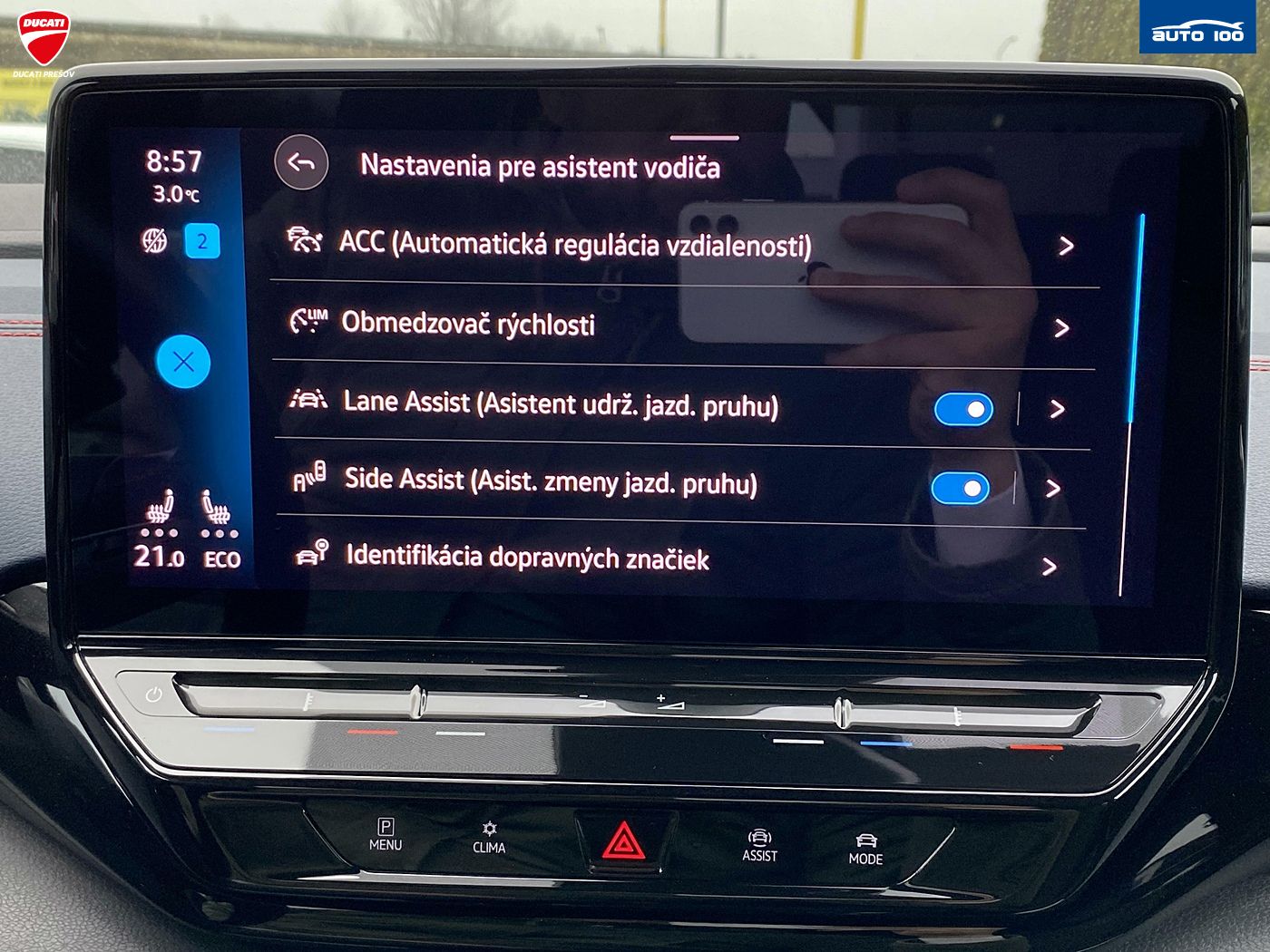 Dažďový senzor, ABS, Airbagy, Alarm, ASR, Brzdový asistent, Centrálne zamykanie, ESP, Imobilizér, Isofix, Adaptívny tempomat, Asistent diaľkových svetiel, Predný a zadný parkovací senzor, Vonkajší teplomer, Front Assist, Lane Assist - udržanie v jazdnom pruhu, Side Assist - upozornenie na slepý uhol, Sign Assist - čítanie dopravných značiek, Dynamic Light Assist - natáčacie svetlomety s funkciou vyrezávania vozidiel v diaľkovom režime, Auto Hold, LED denné svetlá, Senzor tlaku v pneumatikách, 360° kamera, Matrix LED svetlá