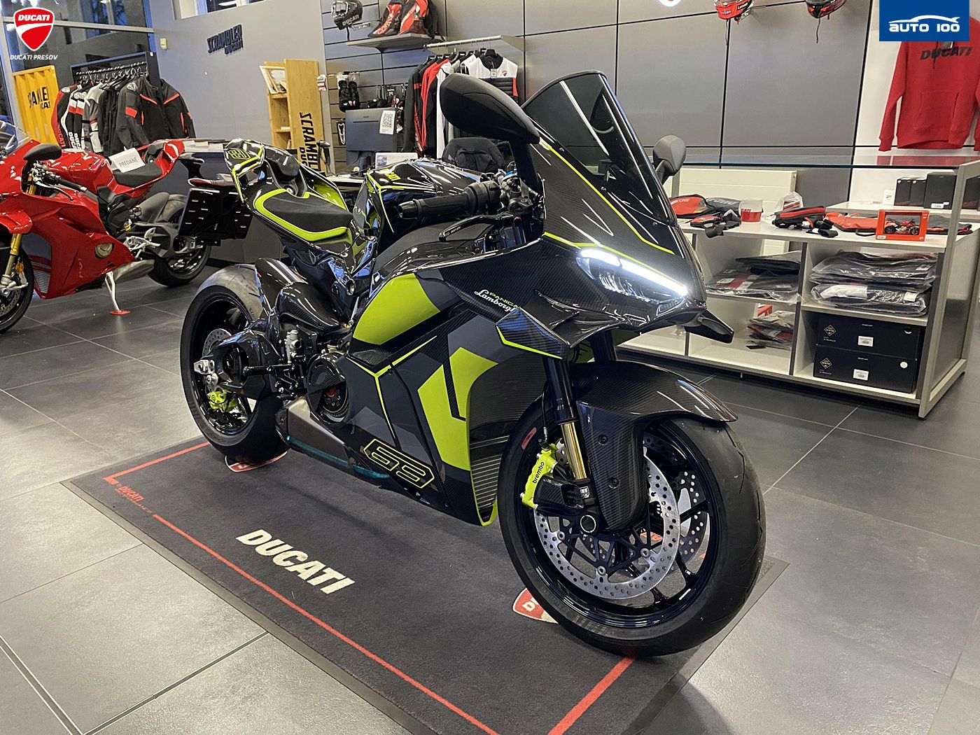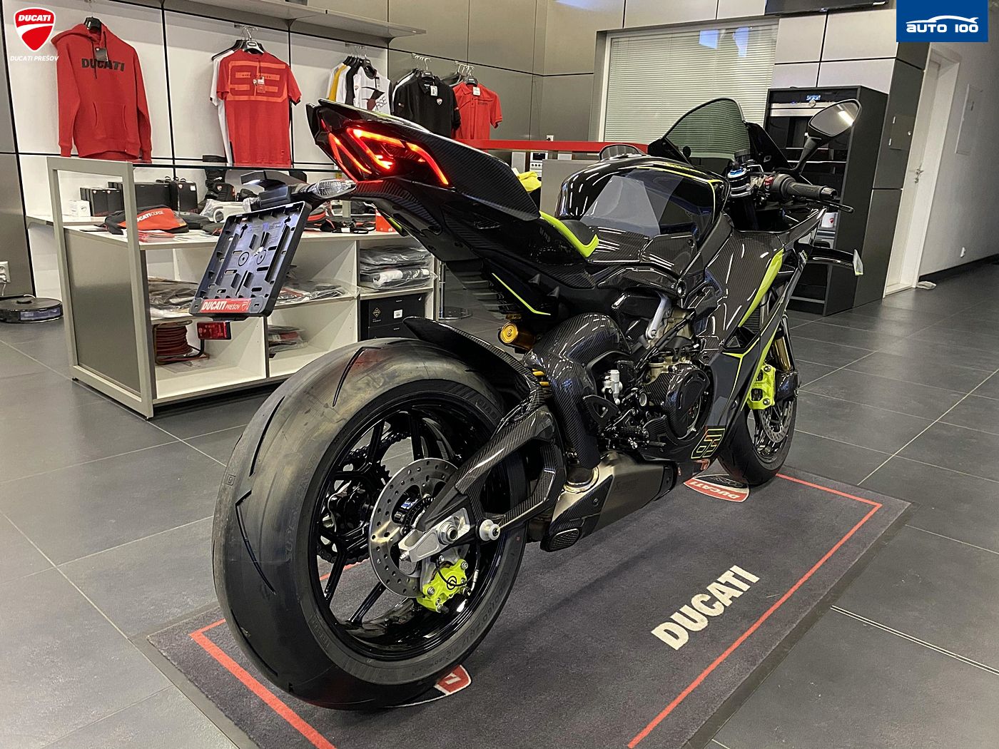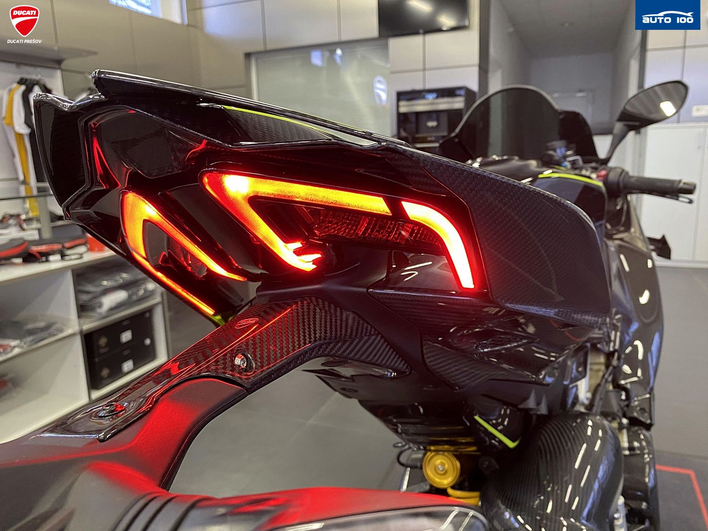 bezpečnostná výbava Jazdné režimy, Režimy výkonu, Race eCBS, Ducati Vehicle Observer (DVO), Ducati Trakčná Kontrola (DTC) DVO, Ducati Wheelie Control (DWC) DVO, Ducati Slide Control (DSC), Engine Brake Control (EBC), Ducati Brake Light (DBL), Ochrana reťaze štandardná výbava Ducati Power Launch (DPL), Ducati Quick Shift (DQS) up/down 2.0, plné LED osvetlenie s automatickým denným svietením (DRL), Ducati Electronic Suspension (DES) 3.0 s Öhlins Smart EC 3.0, Lithium-ion batéria, tlačidlá pre rýchle nastavenie, automatické vypínanie smeroviek. Pit Limiter, Disky z kovanej zliatiny