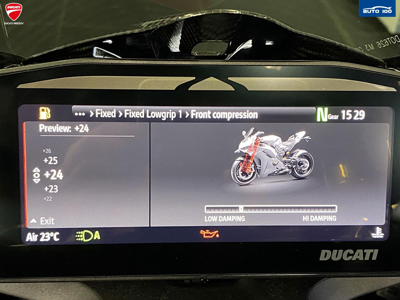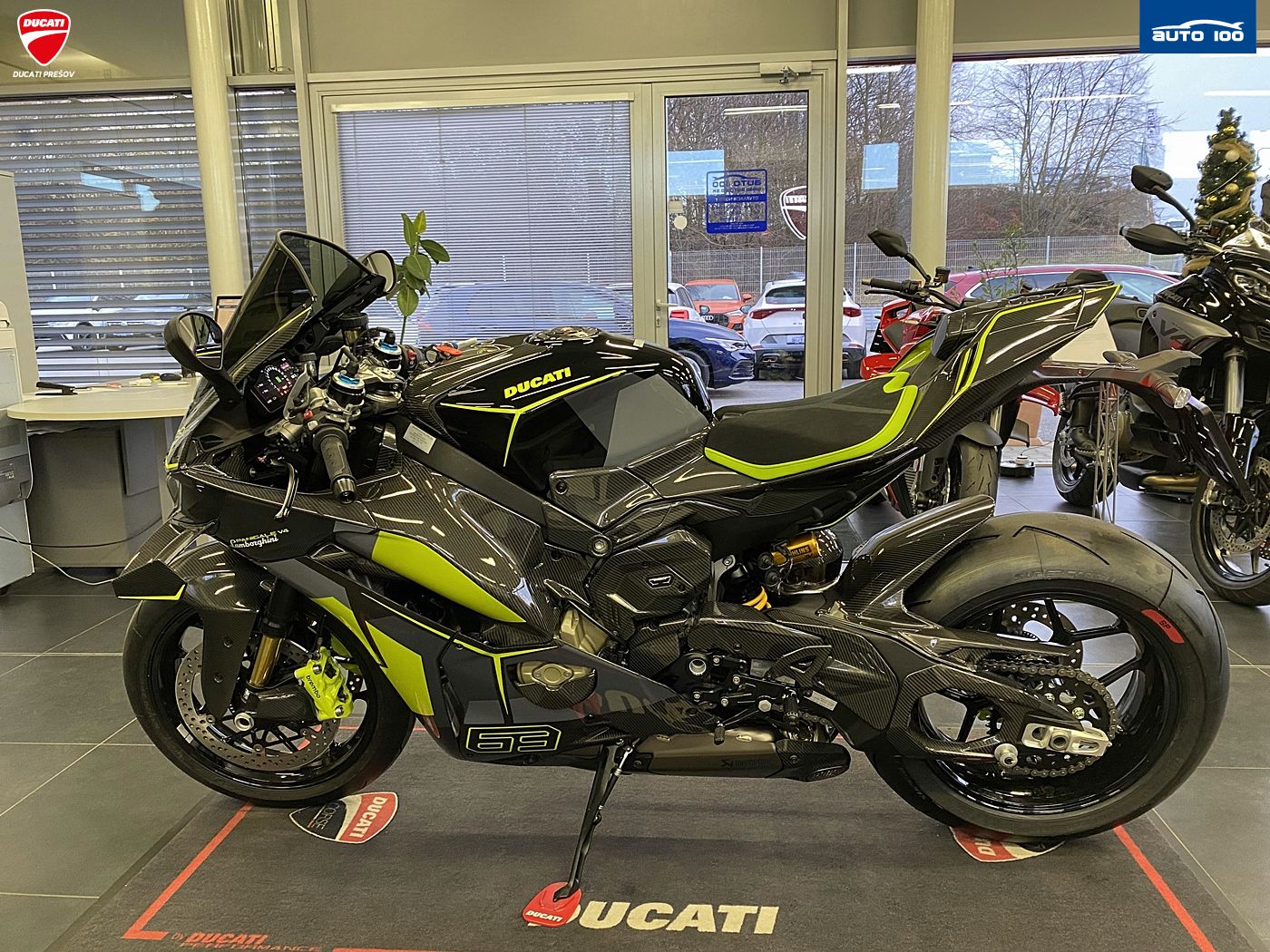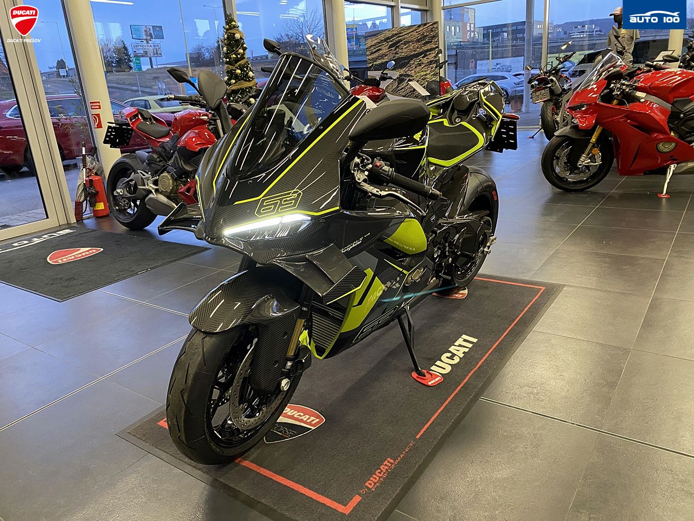 bezpečnostná výbava Jazdné režimy, Režimy výkonu, Race eCBS, Ducati Vehicle Observer (DVO), Ducati Trakčná Kontrola (DTC) DVO, Ducati Wheelie Control (DWC) DVO, Ducati Slide Control (DSC), Engine Brake Control (EBC), Ducati Brake Light (DBL), Ochrana reťaze štandardná výbava Ducati Power Launch (DPL), Ducati Quick Shift (DQS) up/down 2.0, plné LED osvetlenie s automatickým denným svietením (DRL), Ducati Electronic Suspension (DES) 3.0 s Öhlins Smart EC 3.0, Lithium-ion batéria, tlačidlá pre rýchle nastavenie, automatické vypínanie smeroviek. Pit Limiter, Disky z kovanej zliatiny