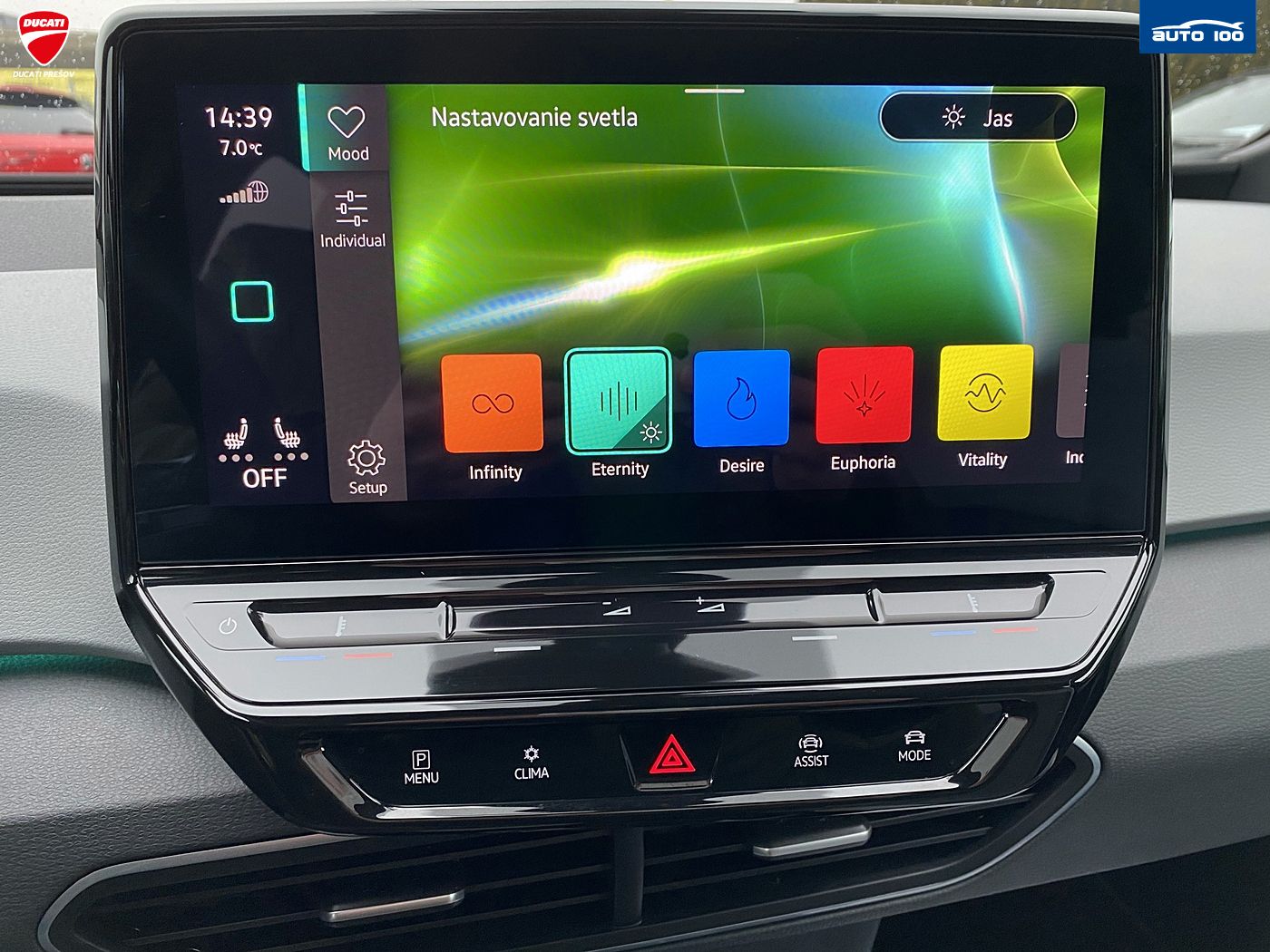 Poznámka Matrix-Beam, LED hlavný svetlomet s variabilným rozdelením svetla, Front Assist a varovaniami a brzdením na vozidlá, chodcov a cyklistov, Wired & Wireless App-Connect, Komfortný telefón s LTE a bezdrôtové nabíjanie, Vysokonapäťový akumulátor 55 kWh (brutto) (netto: 45kWh)