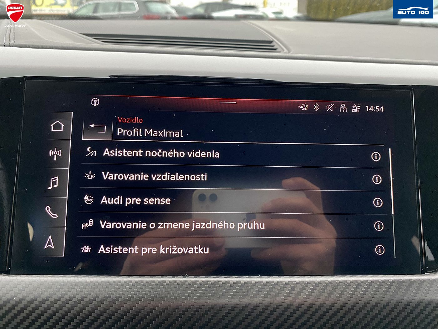Dažďový senzor, ABS, Airbagy, Alarm, ASR, Brzdový asistent, Centrálne zamykanie, Imobilizér, Adaptívny tempomat, Asistent diaľkových svetiel, Predný a zadný parkovací senzor, Vonkajší teplomer, Nočné videnie, Front Assist, Lane Assist - udržanie v jazdnom pruhu, Side Assist - upozornenie na slepý uhol, Sign Assist - čítanie dopravných značiek, Auto Hold, LED denné svetlá, Senzor tlaku v pneumatikách, 360° kamera, Matrix LED svetlá