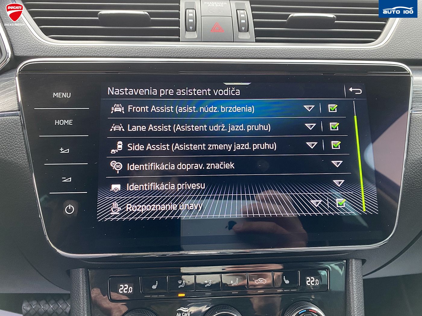 Dažďový senzor, ABS, Airbagy, Alarm, ASR, Brzdový asistent, Centrálne zamykanie, DSC, EBD, ESP, Imobilizér, Isofix, MSR, Adaptívny tempomat, Parkovacia kamera, Asistent diaľkových svetiel, Predný a zadný parkovací senzor, Vonkajší teplomer, Front Assist, Lane Assist - udržanie v jazdnom pruhu, Side Assist - upozornenie na slepý uhol, Sign Assist - čítanie dopravných značiek, Radenie rýchlostí na volante, Auto Hold, LED denné svetlá, Senzor tlaku v pneumatikách