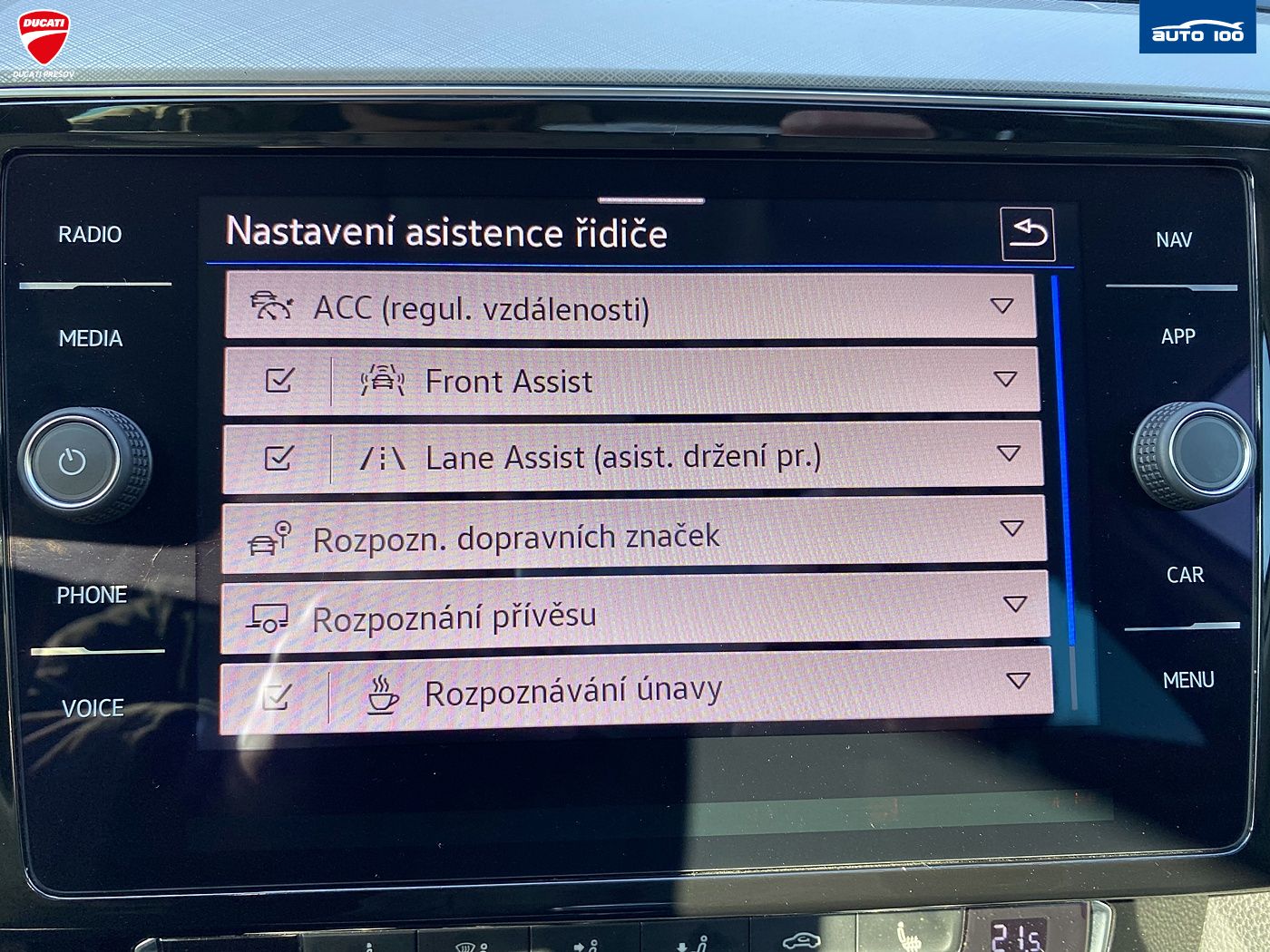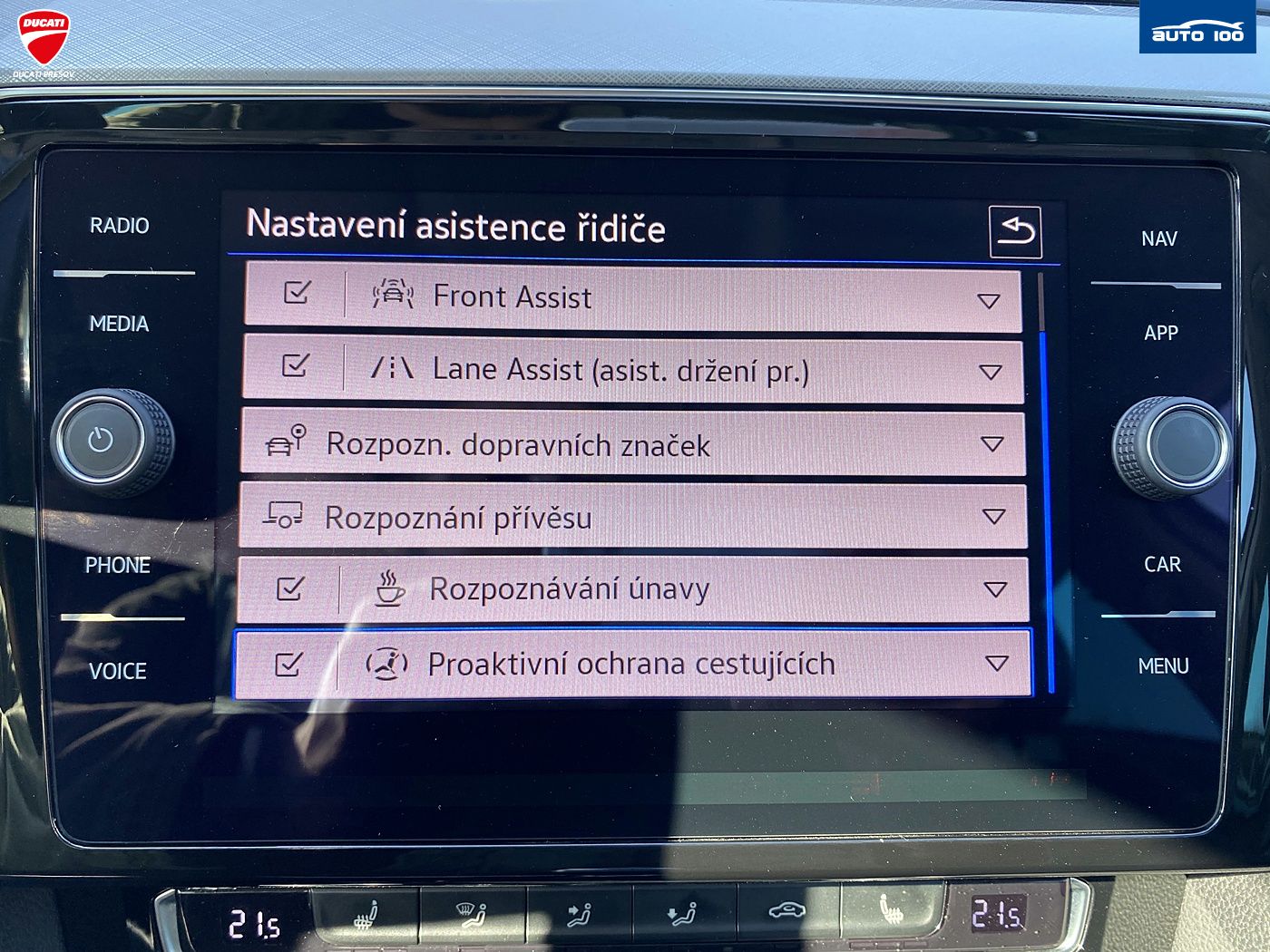 Dažďový senzor, ABS, Airbagy, ASR, Brzdový asistent, Centrálne zamykanie, EBD, ESP, Imobilizér, Isofix, Adaptívny tempomat, Parkovacia kamera, Predný a zadný parkovací senzor, Vonkajší teplomer, Front Assist, Lane Assist - udržanie v jazdnom pruhu, Sign Assist - čítanie dopravných značiek, Auto Hold, LED denné svetlá, Senzor tlaku v pneumatikách